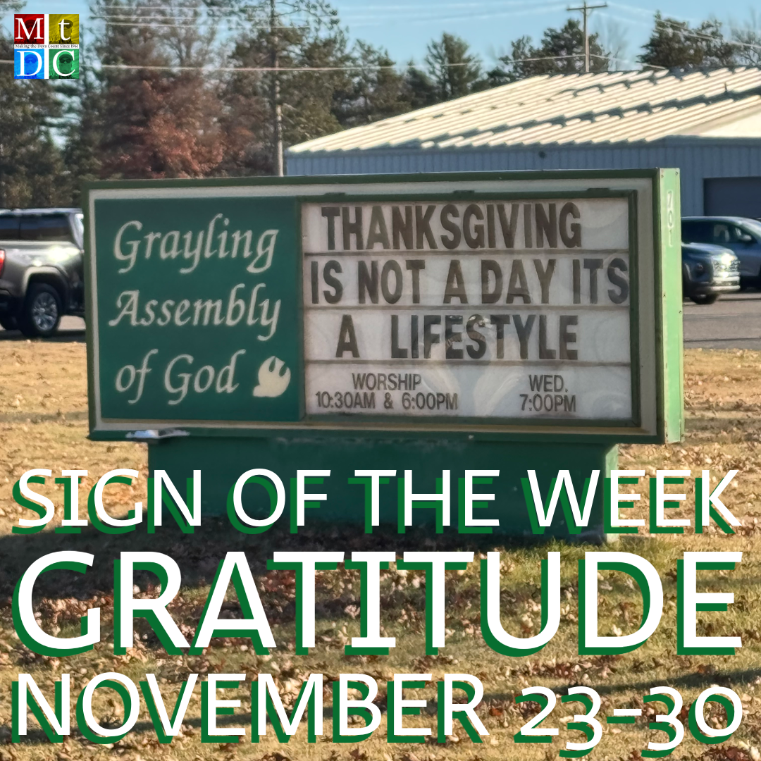 I found these gems on a sign back to back in front of the First baptist Church along  M55 in Prudenville, Michigan over the Labor Day weekend a few weeks back. I found a couple more that’ll have to wait for another week or so, depending on what I find in my travels this coming week.