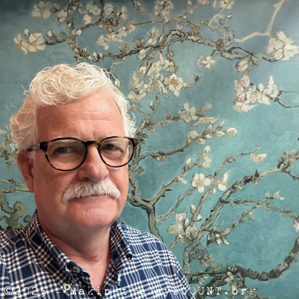 Untitled Published on Tuesday, July 22, 2025, @ 10:10 pm in W^2 – selfieFull resolution (1080 × 1080) ← Previous Next → Me in a selfie with Van Gogh’s ‘Almond Blossoms’ in the background Like this:Like Loading...