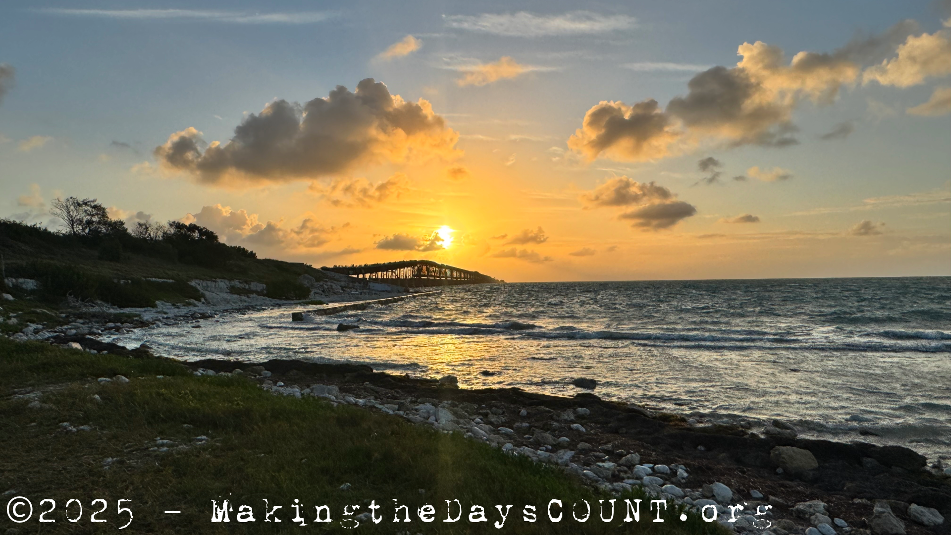 Our rental offers a front row seat for sunrises. Every morning, I wake early so I don’t miss one. This morning, I set off to watch the sunrise from the eastern approach to the Bahia Honda Bridge. I miscalculated, the old bridge obscured the view of the sun breaking the horizon, but I waited patiently and was rewarded with the image below.